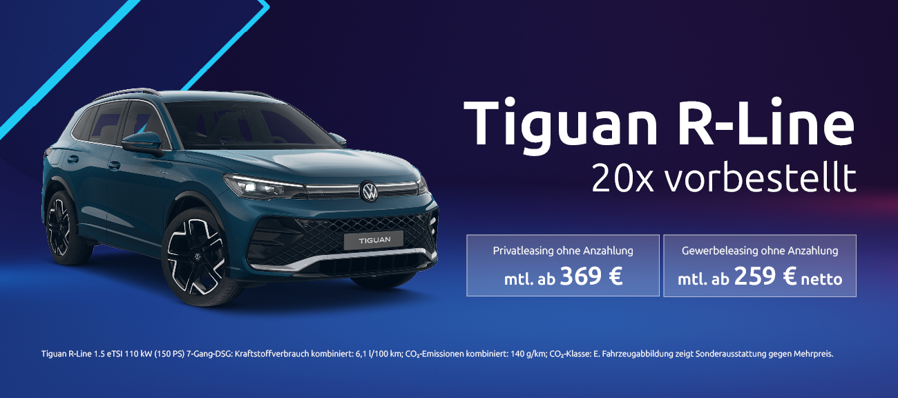 * Ein Angebot der Volkswagen Leasing GmBbH, Gifhorner Str. 57, 38112 Braunschweig, für die wir als ungebundener Vermittler gemeinsam mit Kunden die für den Abschluss des Leasingvertrags nötigen Vertragsunterlagen zusammenstellen. Bonität vorausgesetzt. Änderungen und Irrtümer vorbehalten. Auslieferungs- oder Überführungskosten für die Erlebnisabholung WOB i.H.v. 855,00 € oder für die Abolung beim Händler i.H.v. 1.199,00 € berechnet der ausliefernde Betrieb separat.